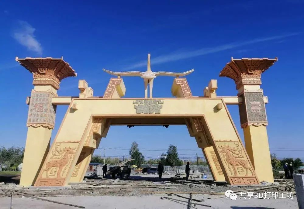 位于新疆乌鲁木齐的福寿园陵园大门,左右各使用50种不同字体的福字与寿字,门两侧的鹿通禄,体现了中国传统文化对于福寿禄的人生追求。在福寿园项目中,客户选择使用砂型3D打印技术制作了大门上的所有浮雕部分,无需开模制作浮雕模板,降低了项目设计制作的成本与周期。