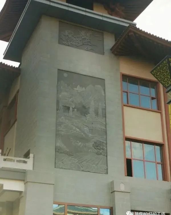 位于宁夏银川市西夏古城景区,青砖白墙,灰瓦红柱,配设砂型3D打印水墨风景浮雕,让整个西夏古城的景观效果及文化内涵有了一个飞跃。